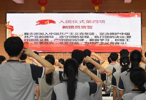(通讯员 向文凯)为深入学习宣传贯彻党的二十届三中全会精神,以新中国成立75周年为契机,加强共青团组织建设及仪式教育,切实增强新发展团员的光荣感和使命感,激励引导团员青年坚定不移听党话、跟党走,杭州新理想高中于9月25日中午在四楼报告厅举行2024年新理想高中秋季入团仪式。