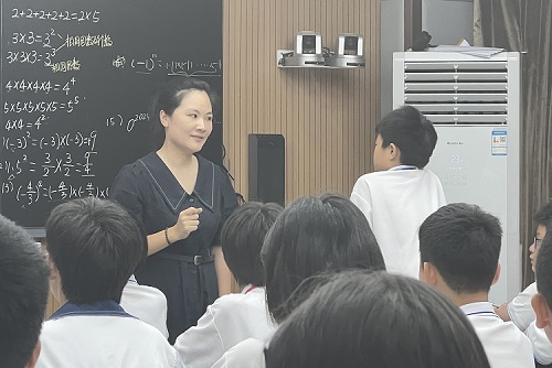 第一阶段由北书学校陈娴老师就新教材的“有理数的乘方”一课开展课堂教学活动。陈老师的“乘方”由浅入深,化繁为简,类比乘法的学习,层层递进。举一反三环节进一步培养了学生的能力,使新知得到了巩固,通过游戏更是把课堂的气氛推向了高潮,整体框架的搭建,让学生明白了学习乘方的重要性和必要性。