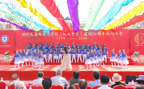 (通讯员 方丽 钟乐平)2024年9月28日上午,浙江义乌外国语学校隆重举行建校30周年庆典活动。校园之内,喜气洋洋,彩旗飘扬,祝贺条幅挂满教学楼四周。资深外交家、博士生导师谢杭生同志,法学教授王红,浙江省民办教育协会副会长兼秘书长林晓鸣先生,义乌市人大、市府老领导,义乌市教育局、民政局、侨联、研修院、总工会及九三学社义乌市委员会等有关部门领导,省内外兄弟学校的领导,美国、澳大利亚等国友好学校代表,义乌外国语学校的历任校领导、校友代表、家长代表、全校师生以及媒体记者共3000余人手持国旗,满脸笑容,脚踏红地毯,穿过时光隧道,齐聚田径场,共鉴荣耀,擘画未来。