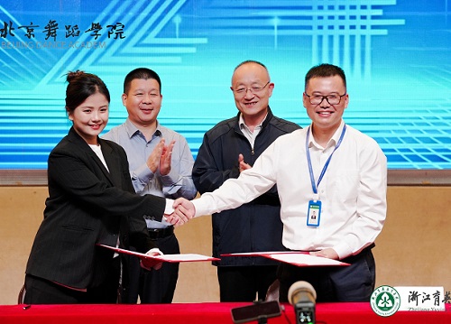 随后,北京舞蹈学院与浙江育英教育集团正式签约。北京舞蹈学院考级院刘轩院长授权代表栾嵘、浙江育英教育集团副总裁俞国平签署合约,张强院长与俞国平校长共同揭牌,双方在美育教育领域的合作正式开启。