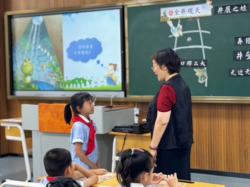 (通讯员 潘佳露 贾熔熔)为了切实发挥名师工作室的示范引领和指导作用,近日,绍兴市上虞区华维文澜小学低段语文教研组及刘雅萍名师工作室开展教研活动,由浙江省特级教师刘雅萍带来统编二年级上册第五单元《坐井观天》课例展示。