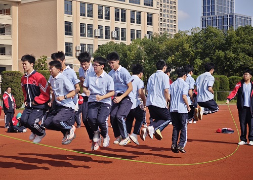 海宁宏达高中举行跳长绳比赛(图)