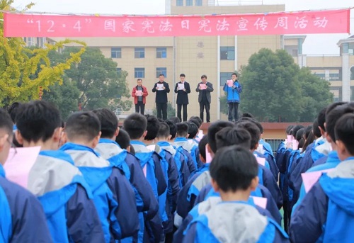 在校领导及学生代表带领下,全体师生齐声朗读宪法条文,法治副校长王之亮法官向全校师生讲解宪法知识,加深师生对宪法内容的理解和记忆,共同感受宪法的庄严与神圣,进一步强化了师生们的法治观念。2500余名师生郑重宣誓:忠于中华人民共和国宪法,维护宪法权威,履行法定职责,为建设法治社会贡献自己的力量。