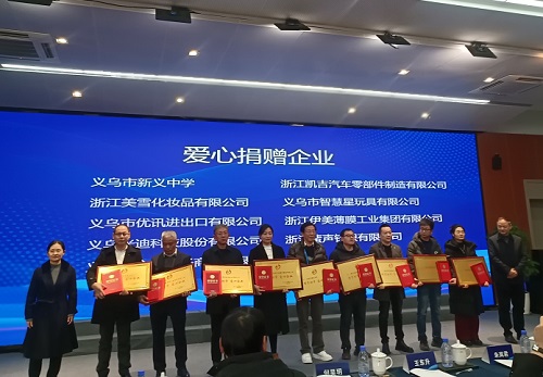 (通讯员 钟乐平)近日,义乌市北苑街道爱心捐赠企业表彰大会在绣湖中学举行。浙江义乌外国语学校董事长、校长杨卫平先生上台领取奖牌和证书。
