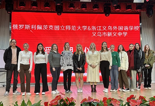 (通讯员 方丽 钟乐平)2024年末,浙江义乌外国语学校迎来了一批特殊的客人——俄罗斯三所著名高校利佩茨克国立师范大学、坦波夫国立大学和沃罗涅日国立大学的15位俄罗斯在校大学生来访,开启了精彩纷呈的文化交流之旅。