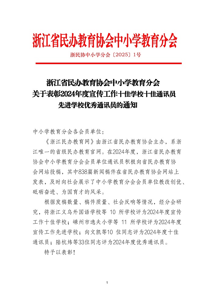 中小学教育分会关于表彰2024年度宣传工作先进学校 优秀通讯员的通知(图)