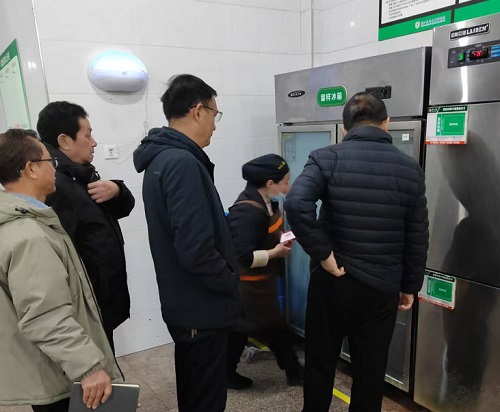 检查组检查食堂时,认真检查食品标识、食品进货台账管理、食品资质等;检查食堂的主、副食仓库、冷库及食品加工操作间等,检查防鼠工作,查看原材料采购、餐具清洗、消毒是否合格,以及食品加工、储存、留样是否规范,工作台账记录是否齐全等。