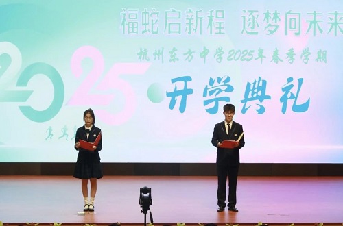 (通讯员 邵雪琳)2月13日下午,杭州东方中学在报告厅隆重举行以“逐梦向未来,福蛇启新程”为主题的2025年春季学期开学典礼。党总支书记、总校长李烈明,校长汪秀婷,党总支副书记毛慧琼,常务副校长王义海,副校长何国宏、杨海敏等学校领导出席典礼。
