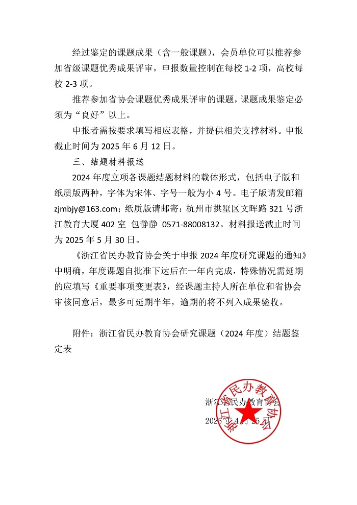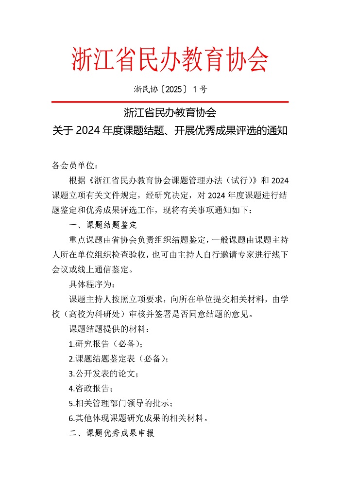 - ·浙江省民办教育协会关于2024年立项课题结题鉴定结果公布(图)