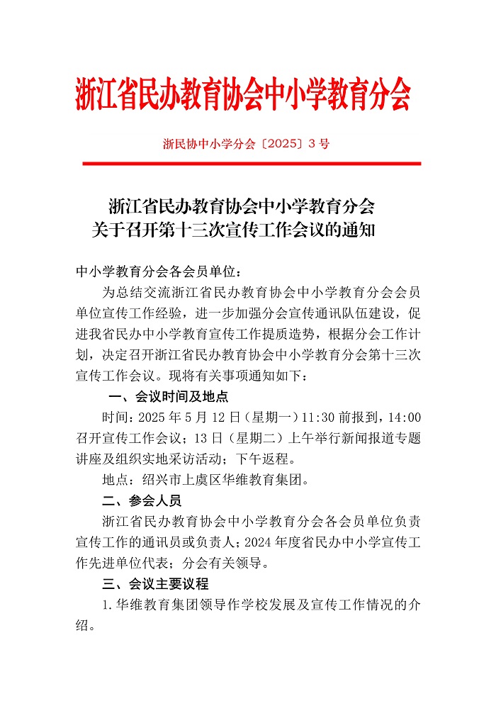 浙江省民办教育协会中小学教育分会关于召开第十三次宣传工作会议的通知(图)