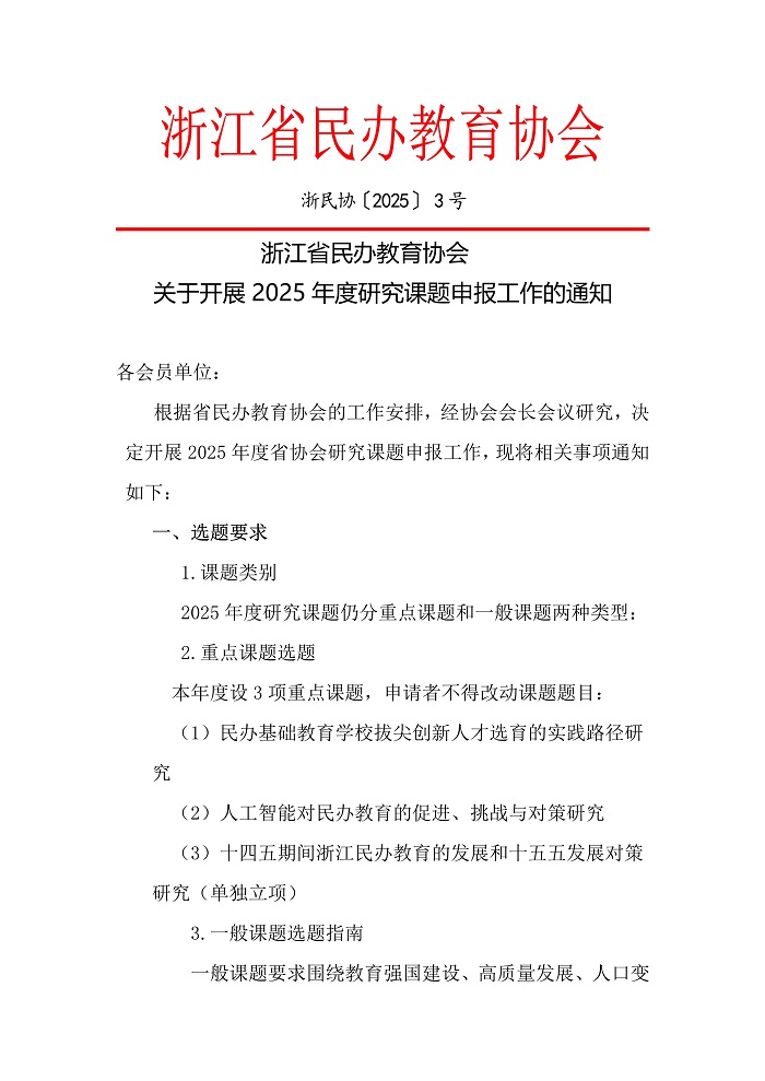 浙江省民办教育协会关于开展2025年度研究课题申报工作的通知(图)