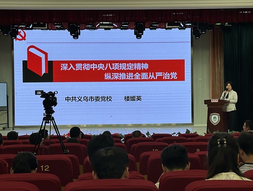 本次专题宣讲会邀请到了义乌市宣讲团成员、义乌市委党校高级讲师楼媛英老师作专题宣讲。楼老师从中央八项规定是党在新时代的徙木立信之举、中央八项规定和中央八项规定精神有何不同、持之以恒贯彻落实中央八项规定精神三方面进行系统讲解和深入阐释。她结合实际案例,围绕中央八项规定精神的出台背景、主要内容、重要意义以及近年来在各级党组织中的贯彻落实情况进行了深入讲解。她强调,中央八项规定是党的作风建设的重要里程碑,对于密切党群干群关系、巩固党的执政基础具有深远意义。同时,她还对如何改进和加强作风建设、如何准确理解和执行中央八项规定及其实施细则精神等重点内容进行了详细解读和深入浅出地讲解。