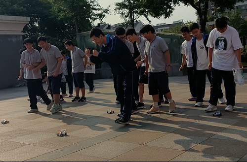 赛场上,高二年级的同学们充分发挥创意,奇思妙想层出不穷。他们以镁片为电极,运用氯化钠、氯化钾等电解质溶液构建原电池,为小车提供源源不断的动力。在比赛过程中,各小组纷纷施展浑身解数,有的小组通过增加电极材料的接触面积来优化电池性能;有的小组则别出心裁地使用热水及氯化钾作为电解质溶液,以此提升电池效率;还有的小组专注于改进电路连接,确保电力能够稳定输出。
