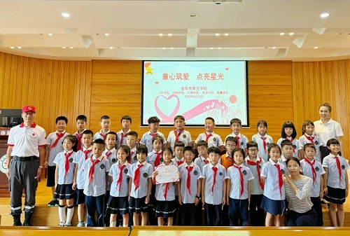 (洪静娴 申盼路)近日,金华市荣光学校里一场以“关爱孤独症儿童”为主题的爱心捐赠仪式温情举行。出席仪式的有金华市婺城区孤独症协会副主席陈玉玲、婺城区红十字会工作人员章珏皓和金华市荣光学校分管领导张晓蓉。参与捐赠的中队有JOY中队、向阳中队、行知中队、风车中队和鲲鹏中队。
