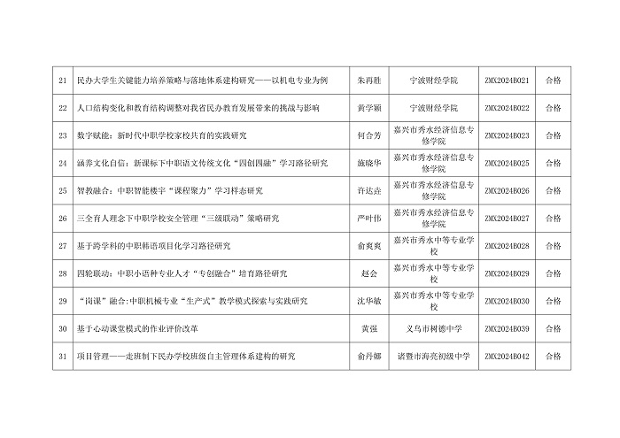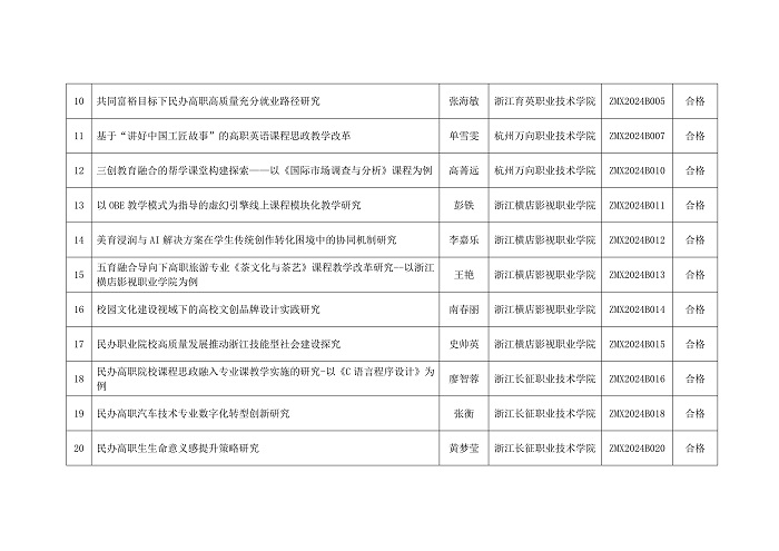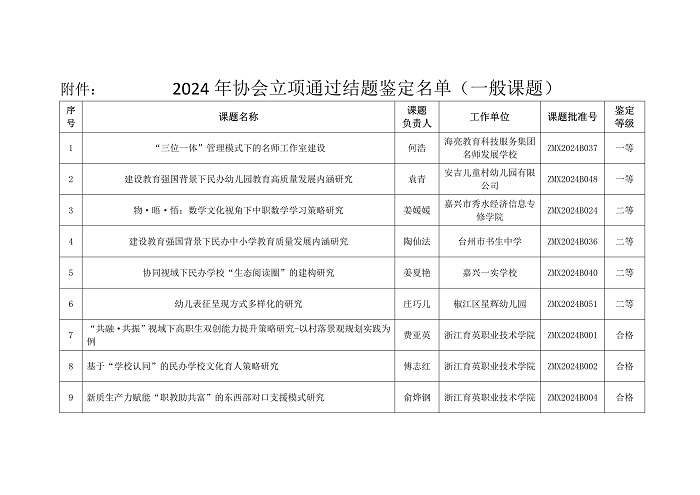 - ·浙江省民办教育协会关于2024年立项课题结题鉴定结果公布(图)