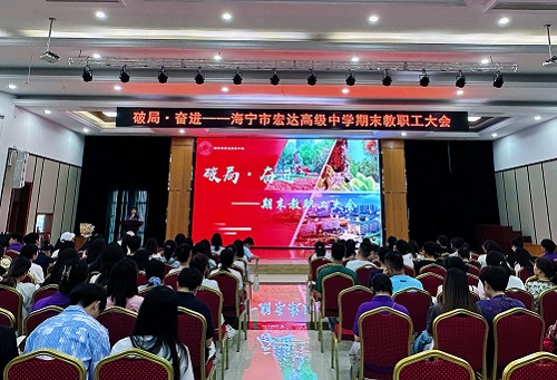 (通讯员 叶婷)2025年7月9日,海宁市宏达高级中学召开2024学年第二学期末教职工大会。本次大会以"破局•奋进"为主题,全面总结学期工作成果,部署新学期重点工作。学校领导班子及全体教职工参加会议。
