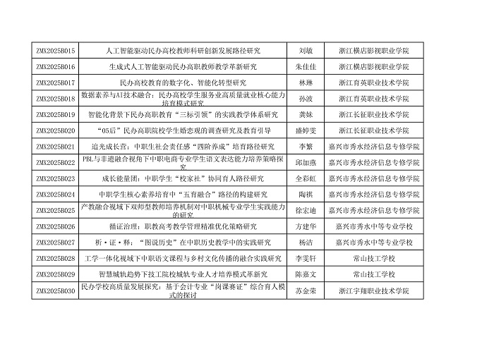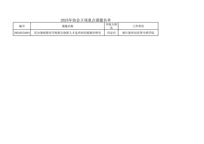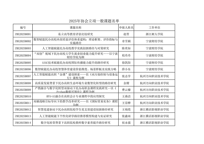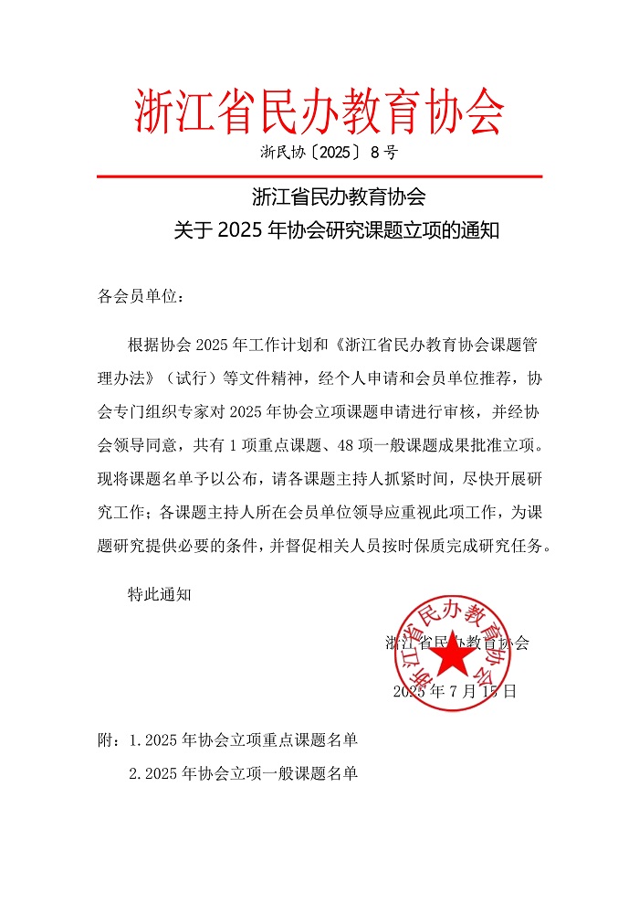 - ·浙江省民办教育协会关于2025年协会重点课题拟立项的公示(图)