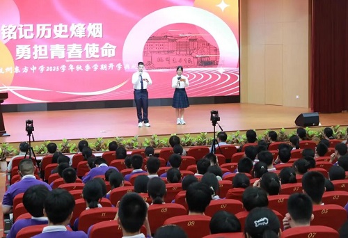 (通讯员 邵雪琳)云天收夏色,木叶动秋声。8月31日,安静的杭州东方中学校园再次热闹起来,一个个彰显青春气息的身影与一张张灿烂的笑脸让校园充满生机。下午15时30分,师生齐聚报告厅,隆重举行以“铭记历史烽烟,勇担青春使命”为主题的开学典礼,共同翻开新学年的扉页。