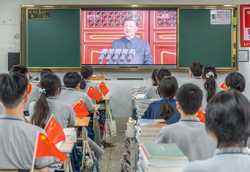 教室里,学生们紧盯屏幕,当“信息作战群”亮相时,同学们难掩激动之情,纷纷热议现代科技的强大力量……从“小米加步枪”到“大国重器”,从“百废待兴”到“世界第二大经济体”,大阅兵的每一个镜头,都是一部浓缩的“国家发展启示录”。