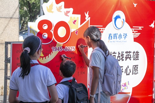 (通讯员 郑静)九月伊始,温岭市春晖小学的校园里弥漫着浓厚的爱国主义氛围。抗战故事娓娓道来,宣誓声铿锵有力,五星红旗迎风飘扬。在2025年这个特殊年份——中国人民抗日战争暨世界反法西斯战争胜利80周年,学校开展了一系列纪念活动,包括开学典礼上听抗战故事、签名仪式、宣誓活动和观看九三阅兵直播。这些活动旨在让青少年一代铭记历史、缅怀先烈、珍爱和平,培养爱国主义精神。