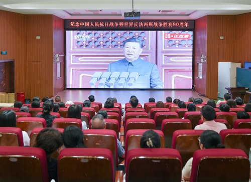 在认真聆听习近平总书记发表的重要讲话过程中,师生们对中国人民抗日战争暨世界反法西斯战争的壮阔历程与伟大意义有了更深层次的认知。讲话引领大家仿佛回到了那段烽火连天的岁月:14年浴血奋战,中国人民以伤亡超过3500万人的巨大牺牲,顽强支撑起世界反法西斯战争的东方主战场,为最终胜利作出了不可磨灭的重大贡献,有力捍卫了人类正义与世界和平。这场伟大胜利,彻底打败了穷凶极恶的日本军国主义侵略者,洗刷了近代以来中国屡遭侵略、屡战屡败的民族屈辱,捍卫了中华民族五千多年积淀的璀璨文明。全体中华儿女以血肉之躯共同谱写了感天动地、气壮山河的雄壮史诗,实现了中华民族从近代深重危机迈向伟大复兴的伟大历史转折,开启了古老中国凤凰涅槃、浴火重生的崭新征程。