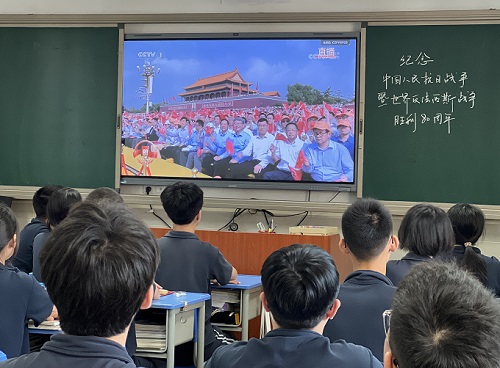 看着一个个威武整齐的方队出现在镜头,学生们有感而发:“今天的和平来之不易,我们要铭记历史、珍爱和平,把个人梦想融入国家发展,用刻苦学习托起强国未来。”天马初中教师们表示将用好抗战这本“最好的教科书”,把伟大抗战精神转化为立德树人的强大动力,在新学期以更加昂扬的姿态培育栋梁之才。