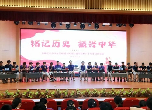 (通讯员 李淑敏)2025年是中国人民抗日战争暨世界反法西斯战争胜利80周年。这场伟大胜利是中华民族从深重危机走向伟大复兴的历史转折点,为铭记那段烽火连天的峥嵘岁月,缅怀革命先烈的不朽功勋,弘扬伟大的抗战精神,杭州东方中学于9月至11月精心策划并开展了“庆祝中国人民抗日战争暨世界反法西斯战争胜利八十周年”学生爱国主义教育系列活动。以“活动育人”为核心载体,将艺术熏陶、知识传播与思想引领深度融合,让全校师生在沉浸式参与中厚植家国情怀,汲取奋进力量,日前圆满收官。