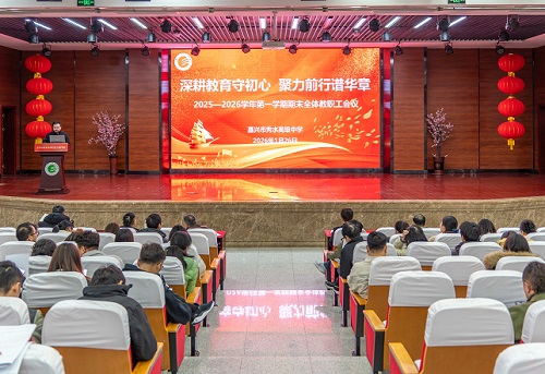 (通讯员 包玉兰)回望耕耘路,蓄力新征程。2026年1月26日,嘉兴市秀水高级中学隆重召开2025学年第一学期期末全体教职工会议。全体教职员工齐聚一堂,共同回顾一学期以来的奋斗足迹与发展成果,科学谋划学校高质量发展新路径。
