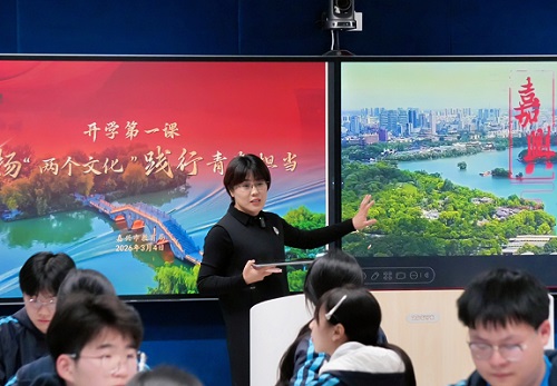 课堂上,陆雅平借助影像资料,带领同学们“走进”三个文化现场——高以永故居、南湖革命纪念馆、嘉兴古镇。在一幕幕真实可感的情境中,文化的深层力量逐渐显现:历史文化,让人格得以涵养,在传统的浸润中成为有根的人;革命文化,让政党永葆初心,在历史的回望中获得前行的力量;两种文化交织,让城市焕发新生,在传承与创新中成为有魂的家园。