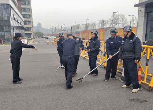 演练前,昌硕派出所的警官结合真实案例,为安保人员详细讲解了反恐防暴理论知识,包括常见恐怖袭击手段、应对策略以及防暴盾牌、钢叉等器械的正确使用方法。