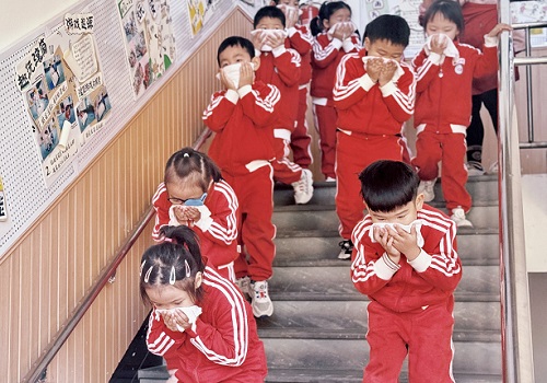 随着急促的警报声响起,各班教师迅速作出反应,本着“安全第一”的原则,有序的组织幼儿快速、科学疏散。全体幼儿捂住口鼻、低头弯腰,不惊慌、听指挥、动作敏捷,按照疏散路线有序快速地撤离到安全区域。各班教师立即清点人数并向领导汇报班级撤离情况,确保每位幼儿安全撤离,无一遗漏。