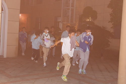 义乌外国语学校开展学生宿舍火灾紧急疏散演练(图)