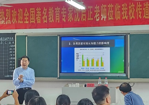 在教育的广袤星空中,总有一些智慧的光芒能够穿透迷雾,为前行者照亮道路。讲座中,沈启正老师以其幽默风趣的谈吐,将大量严谨的调查数据和生动的案例巧妙融合,激发了所有老师的兴趣。他从影响学生成绩的关键因素深入剖析,以独特视角探寻教学的有效方法,为老师们开启了一扇全新的教学认知之窗。那些看似枯燥的数据,在他的讲述中仿佛有了生命,鲜活地展现出教学过程中影响教学质量诸因素的微妙关联与深刻启示。不仅如此,沈老师还从教科研的高度,为老师们指引了专业成长的方向,让大家意识到日常教学与科研并非割裂,而是相辅相成、相互促进的有机整体。