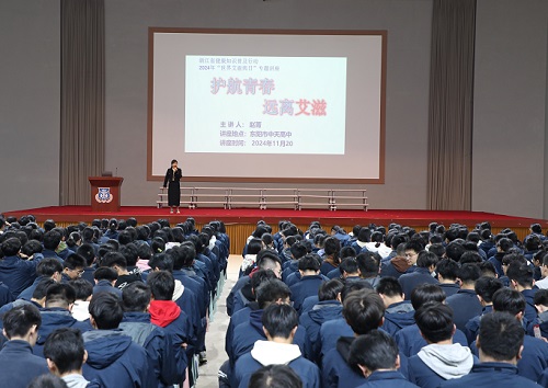 11月21日下午,高三年级五百多名学生齐聚在体艺馆大厅,聆听东阳市疾控中心健康教育科科长赵菁带来的专题讲座。赵菁重点讲解了艾滋病的传播途径、临床表现、诊断方法以及预防措施,提醒同学们远离网吧、游戏厅、酒吧等可能存在高风险的娱乐场所,避免非法输血和注射,提高性行为安全意识。她强调,当前艾滋病并不能通过吃药、打针等手段痊愈,也没有疫苗可以预防,因此加强艾滋病预防就显得尤为重要。