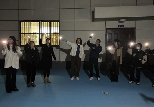 饭后,当夜幕低垂,幼儿园的后院被柔和的灯光点缀得温馨而浪漫。在这个宁静而美好的时刻,老师们围坐一起,继续享受着团建游戏的乐趣。