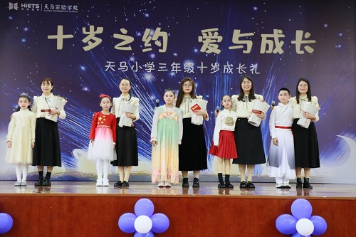 (通讯员 蔡佳霓 俞婷婷)近日,诸暨天马小学三年级全体师生与家长齐聚校园体艺馆,隆重举行“十岁之约,爱与成长”主题成长典礼。作为学校“四礼四节”特色活动的重要组成部分,此次成长礼以仪式教育为载体,通过感恩、责任与才艺展示等环节,引导学生感悟成长意义,深化家校共育理念,展现学校“以爱育爱”的办学初心。