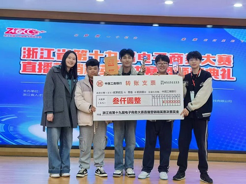 本次决赛聚焦商品档案表提炼、直播脚本策划、直播销售技能三大核心模块。面对全新赛事平台,四位同学自3月19日起开启魔鬼训练,每日晚自习全员投入,从研究平台规则到反复打磨脚本,从商品卖点挖掘到直播话术设计,团队默契度与专业能力迅速提升。决赛当日,他们凭借精准的市场分析、创意十足的营销策划及富有感染力的直播表现,在三个模块均斩获接近满分的佳绩。