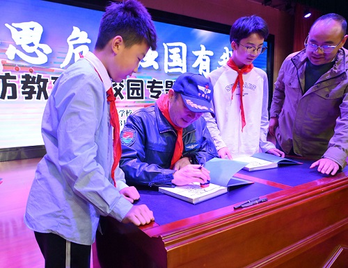在提问互动环节,同学们争先恐后地向张跃华大校提问,大校耐心细致地回答了同学们的问题,并赠送了航天模型作为纪念。现场还举行了小型的书籍签名活动,气氛热烈。