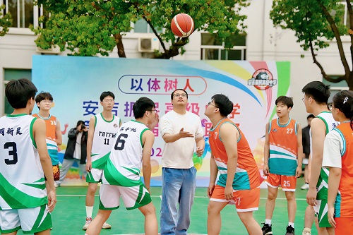 (通讯员 黄益丹)4月16日下午,安吉振民高级中学第十四届“以体树人”篮球联赛开幕式在校篮球场举行。校长章育帜老师、党支部书记盛晓荣老师、副校长马德成老师、副校长高杰老师、副校长孙君老师、德育主任朱涛老师参加开幕式。这不仅是一场体育盛会,更是一堂以篮球为载体的育人课堂,诠释着“文明其精神,野蛮其体魄”的振民精神。
