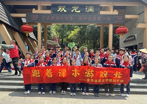 怀揣着对知识的渴望与探索的热情,四年级的同学们沿着蜿蜒的山路来到双龙洞景区入口处,纷纷和语文课本、叶圣陶爷爷的铜像打卡合影。接着,大家跟随叶圣陶爷爷的笔触,探访双龙洞景区,体验仰卧轻舟穿越岩缝的刺激感,学习溶洞知识。收获与感悟这场融合历史、地理、语文的跨学科之旅,让知识在孩子心底慢慢生长出璀璨结晶。