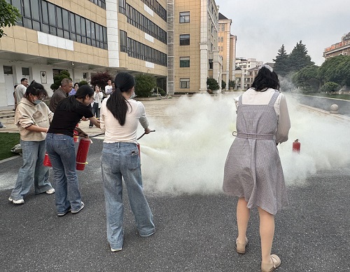 (通讯员 钟乐平 朱永林)2025年4月26日傍晚,浙江义乌外国语学校高中部60多名教师集中在致远楼一楼广场,参加消防器材使用培训暨实操演练。