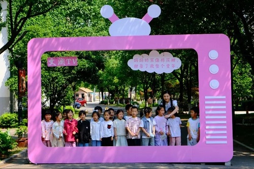我们一起上电视:走进文心大道的“巨幕影屏”,萌娃们大声表达对妈妈的最真挚的爱。