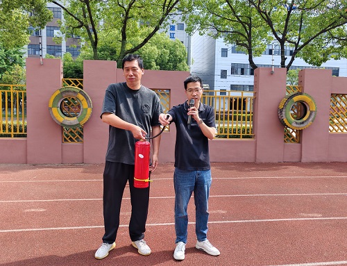 随后,全体师生一起操场上学习灭火器的正确使用方法。