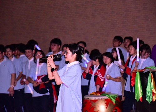 校领导到场为学子送上鼓励,强调学校始终是学生的坚强后盾。高一高二学生代表献唱《奔跑》,并赠送手写祝福卡片,字里行间传递着真挚的关怀。高三学子以《逆战》、《一路生花》两首歌曲回应,表达迎难而上的决心。全体教师合唱《真心英雄》,寄语学生以平凡之躯成就不凡梦想。