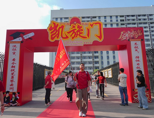 在老师、家长、学弟、学妹们的祝福声中,同学们意气风发地穿过出征门和凯旋门,踏上象征成功与希望的红地毯,走出校门、走向考场、奔向星辰大海。