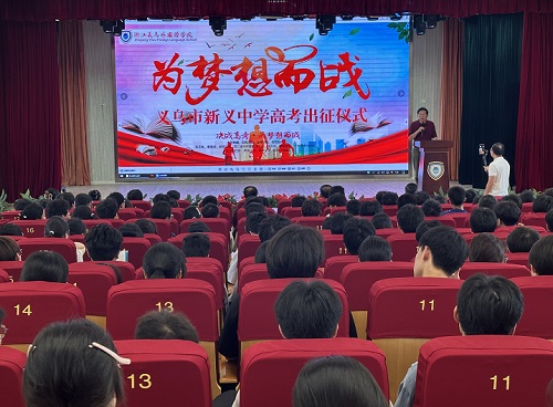 (通讯员 钟乐平 徐文杰)2025年6月7日上午7:28,决胜高考的集结号在浙江义乌外国语学校学生剧院吹响,2025届高三167名勇士即将奔赴义乌二中考场,高考出征仪式在这里隆重举行。