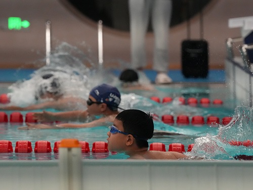 杭州萧山湘湖未来学校举行首届游泳竞速赛(图)