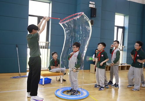 小学部围绕“体验科技乐趣,探索科学奥秘”展开。科技游园会里,“AI互动”区学生与“AI诗人”赛诗,感受科技神奇;“穿越火线”“空气炮”等体验项目,让抽象科学知识变得直观有趣,点燃孩子们对科学的热情。同时,科普微童话和科技创新写作比赛,也为学生提供了发挥想象、展示才华的平台,诞生不少佳作。