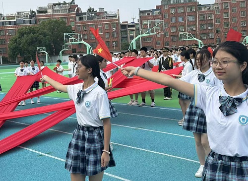 开幕式最后,小学部啦啦操、初中部朗诵、高中部合唱精彩表演展现了义外学子飞扬的青春,诠释着对祖国深深的祝福。