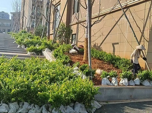 “这几天气温回升到 35 度,地表温度40多度,但工期不等人。” 负责苗木栽种的师傅抹了把额头的汗水,指了指身旁刚定植的树苗。作为2025年学校硬件提升重点工作,本次工程正同步推进绿化种植、园路铺设和廊架搭建等多个施工节点。为避开正午高温,项目部实行“朝五晚七”作业制,将最热时段调整为休息时间,同时在现场设置遮阳棚,配备防暑药品。
